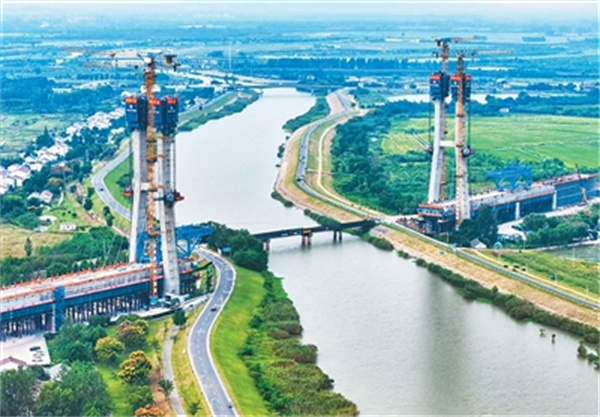 人民日報海外版:滬寧合高鐵南京特大橋跨滁河斜拉橋主塔順利封頂