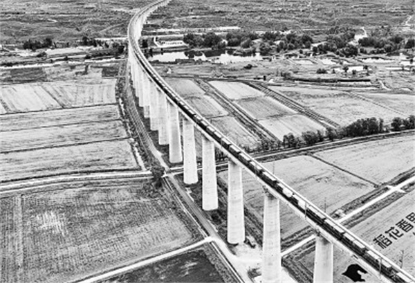 光明日報:一列火車(chē)經(jīng)過(guò)內蒙古準格爾旗的稻田
