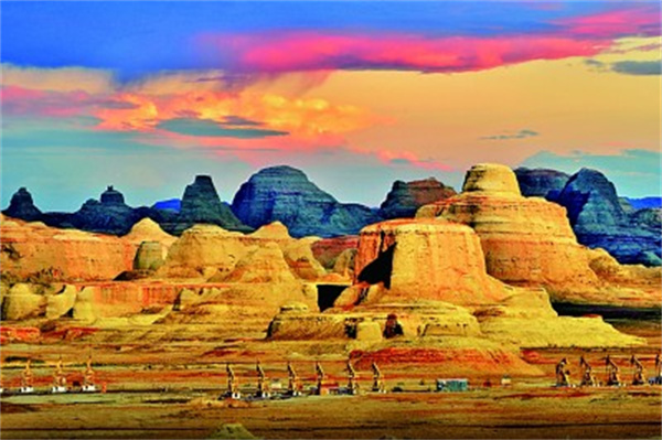 新疆克拉瑪依市烏爾禾區世界魔鬼城的“磕頭機”森林??死斠朗形麄鞑抗﹫D