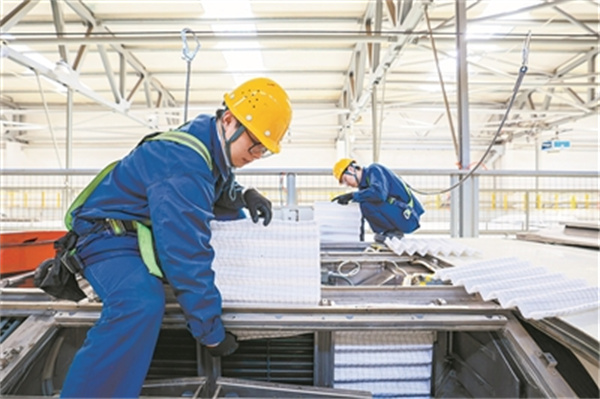 技術(shù)人員在對列車(chē)空調系統進(jìn)行清洗維護。 新華社記者 楊青攝
