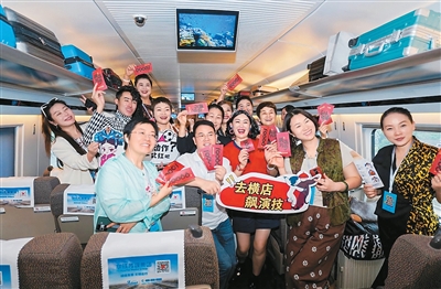 江蘇游客乘坐影視主題旅游列車(chē)前往橫店。橫店影視城供圖