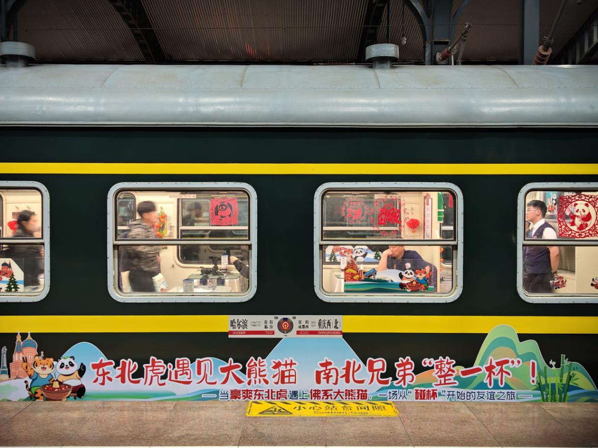 中國鐵路哈爾濱局集團公司開(kāi)行首趟“東北虎遇見(jiàn)大熊貓”川渝銀發(fā)旅游專(zhuān)列